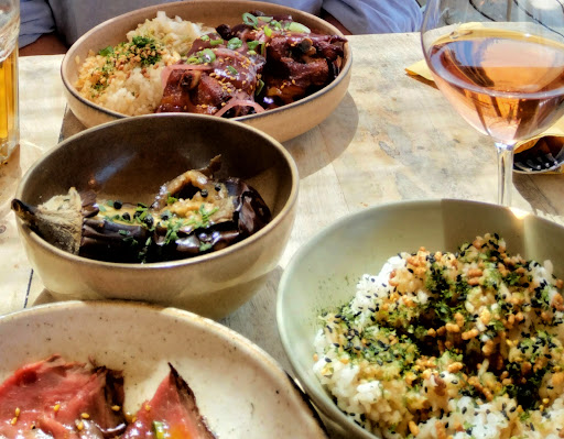 Plats : --- Les boulettes de poisson vapeur à la cambodgienne est un délicieux plat en sauce servi avec un bol de riz sur le côté. Les boulettes sont baignées dans une bonne sauce au lait de coco et au curry jaune le tout agrémenté de citronnelle, de cacahuètes concassées, de vermicelles frites et d'herbes aromatiques asiatiques. Le plat, bien que rempli de saveurs différentes n'est pas chaotique et chaque saveur se distingue afin de sublimer celle des autres ingrédients. --- Le nippon pan est un burger maison, avec une bonne viande de poulet Tonkatsu (pané à la chapelure panko), entre deux bun toastés au barbecue le tout agrémenté d'oignons caramélisés, d'une sauce au fromage frais épicé, assaisonné avec des herbes et des épices asiatiques. Le burger est copieux et savoureux. --- Le ceviche préparé dans une sauce coco curry jaune était frais et délicieux. L'ajout de vermicelles de riz frites assaisonnés avec des épices donne une dimension plus profonde au plat en créant un choc de textures entre le moelleux du poisson cru et le croustillant des vermicelles. Ce ceviche est un plat copieux mais qui paraît léger une fois dans l'estomac.