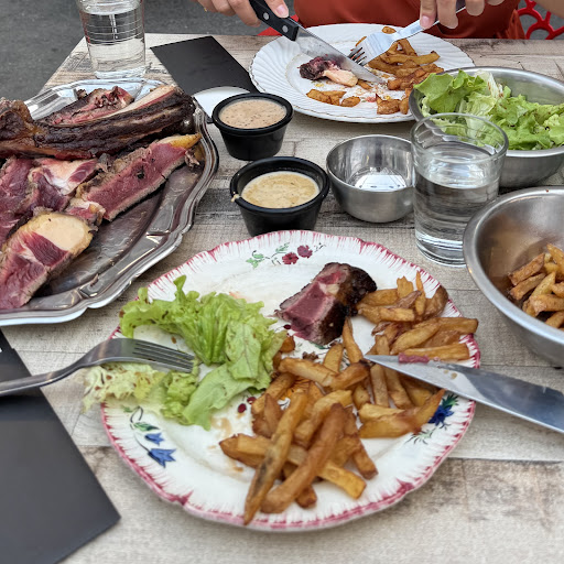 Lieu atypique pas de doute... Mais une soirée catastrophique.... Arrivée à 20h, apéro en terrasse... Jusque là ça va... On demande un verre d'eau avec l'apéro, on doit le réclamer une 2eme fois. Un orage arrive, pas de bol, on passe en salle pour manger.... On attend que l'on vienne prendre notre commande. On est un peu long à se décider car tout est appétissant... Et là, pas de bol.... Notre commande arrive mais, atterrit sur une autre table. Donc on attend que le couac soit géré.... Il est 21h30 que nous ne sommes toujours pas servi. 21h40, hourraaaaa, nos assiettes arrivent mais gros problème sur les cuissons. Il faudrait faire la différence entre bleu, saignant cuit, bien cuit..... Mais si il y avait eu que notre table mais ça n'a pas été le cas. En attendant nos assiettes, nous avons déjà mangé un saladier de frites, bonnes et chaudes quand elles arrivent sur la table. 22h, nous avons fini de manger et la table est débarrassée..... Et arrive le moment de l'addition, même pas un mot d'excuse et un geste pour l'attente et les erreurs faites sur notre table.... A vous de voir.... Mais je ne suis pas prête d'y retourner.... A moins de vouloir prendre un verre car entre un bar à viande et un bar (normal), je n'ai pas vu de différence.... Je dirais que l'on a du mal à trouver sa place...