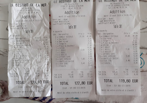 Changement de proprio a St Trojan ou on avait nos habitudes pour le plateau de fruits de mer a Oléron donc on a tenté ce bistro de la mer. Bon ca fait resto a touriste. Et en essayant ca confirme que c'en est un.