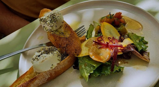 Franchement moyen et cher. Venus in extremis vers 15h on a bien voulu nous servir du froid ce qui s’est finalement résumé au choix entre une salade mozzarelle a 14€ (sisi) et une salade chèvre chaud et magret a 15€. Je calcule parfois encore en francs et la ça fait 100 balles une salade verte avec un peu de magret et un petit frometon. La vache...On se dit quitte à raquer on prend l’option 2 et on croise les doigts pour qu’on ait à manger. Rapé...rien dans l’assiette. A ce tarif on vous sert un truc hybride entre entrée et un plat mais qui penche clairement plus vers l’entrée (cf photo). C’est joli mais vite mangé. On aussi vite payé et on est vite partis.
