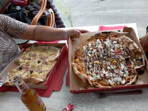 De retour d'une grande balade, et donc avec une grande faim, je suis passé avec ma mamy et mon cousin (nous sommes de bons vivants) découvrir cette pizzeria. Quelle bonne surprise, 3 personnes charmantes et adorables, qui nous ont confectionné 3 pizzas délicieuses : enfin de vraies pizzas à la pùte fine (hé oui, c'est comme cela la tradition, et ce n'est pas pour rien), une garniture parfaitement équilibrée et adaptée avec beaucoup de goût, et enfin une cuisson au feu de bois, et pour le coup, c'est rare et trÚs appréciable. Un grand merci à votre équipe, nous reviendrons sans hésiter !!!!! (Août 2022)