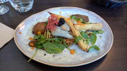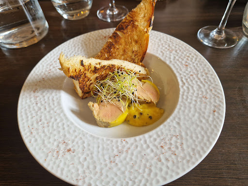 Read moreJe ne vais pas souvent dans ce restaurant et pourtant l'adresse est bonne, le chef a un vrai talent ça se ressent partout dans l'assiette, la qualité est au rendez vous. Maintenant pour se qui est du prix et de la qualité, 9 euro le dessert, à voir sur les photos. Ok c'est joli mais ça les vaut pas. Pas de formule, on en a eu avec le vin au verre pour 42 euro par personne environ, c'est trop cher ça manque d'une formule vraiment et ça manque en quantité pour le dessert, sinon le reste globalement c'est pas trop mal. Le chef a vraiment une touche d'originalité qui lui ai propre, on aime ou on aime pas, ça m'a surpris et globalement on passe toujours un bon moment à chaque fois qu'on viens à...