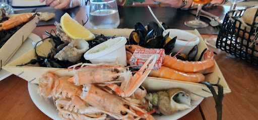 Ayant invités une amie à nous Un peu déçu dans l ensemble Ambiance de salle du fond vieillotte malgré une vue sur les bassins Côté repas 2 formule fruits mer le buffet pas très agréable à la vue huîtres et bulots excellents Mais pas de fourchette à huîtres, la gérante nous a conseillée le couteau... Mais 2 menus à 32,90 vraiment pour le prix décevants Le saumon mariné 3 micro tranches compressées dans une brochette entre des tomates cerise et citron Puis nos petites portions de petits chipirons coupés en 2 posés sur des pommes de terre parisienne frites et salade verte Pour un menus de ce tarif on espérait plus de créativité et qualité Était ils frais ou surgelés mais pas de saveurs Le dessert gourmand simple et le rhum n est pas apprécié de ceux qui ne boivent pas d alcool ,le dire serait sympa et une cuillère en plastique 🤔pour manger le dessert, désolé on était dans un restaurant Bon on aura essayés sommes...