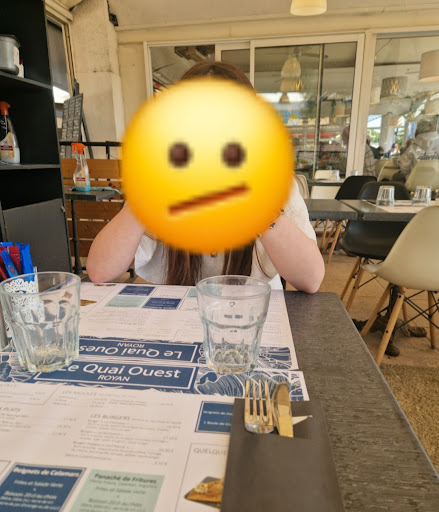 Intoxication alimentaire. Moules frites hier dans ce restaurant à 12h = malade toute la nuit. Effectivement j'ai bien vu que certaines moules n'étaient pas cuites et étaient visqueuses.. je n'ai rien mangé d'autre de la journée donc je sais que mon intoxication vient de là. 6h plus tard crampes atroces / frissons / vomissements. Déjà que nous avons attendu de façon interminable 1) que l'on vienne nous voir dans un premier temps, 2) nos plats ensuite (de façon interminable et totalement incompréhensible également, car certains arrivés après nous ont pourtant été servis bien plus tôt, au point qu'ils nous ont regardés avec interrogation..). Un des deux serveurs était sympathique et souriant, l'autre beaucoup moins par contre. C'est bien peu comme consolation. Qui me rembourse le préjudice de ne pas pouvoir travailler aujourd'hui? Je suis malade comme je ne l'ai jamais été et très en colère. J'ai mangé des moules frites à Oléron, Ré, Arcachon, etc. etc. Première fois de ma vie que je vis ça 🤦♀️ NB: d'aucun parlent de terrasse chauffée.. je ne sais pas où ils ont vu ça car nous nous étions en plein courant d'air et gelés. Au point que nous avons abandonné notre table et sommes partis commander un dessert à l'intérieur. Le dit dessert est arrivé très vite comparé aux plats (une crème brûlée et un café gourmand). Le café gourmand était très copieux (beaucoup de petits desserts avec: boule de glace, morceau de fondant chocolat baignant dans la crème anglaise, petit gâteau à la noix de coco, petite terrine d'une sorte de crème nappée de lait concentré caramel) mais assez insipide: crème anglaise en brique de grande surface / pareil pour la boule de glace aucun goût et les petits gâteaux idem. Bref hormis la viande de ma fille ("pièce bouchère du jour") le reste était insipide. Alors en plus finir intoxiquée par dessus.. Et pourtant d'habitude quand je choisis un resto, je guette la présence d'autochtones plus que de touristes pour guider mon choix (les habitants étant bien plus à même de connaître les bonnes adresses..). Bref "fail" total ce jour. Encore heureux que l'intoxiquée du jour ce soit moi et non ma fille (comme je l'ai lu ici pour un monsieur) là vraiment j'aurais...