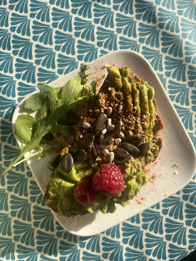 On a pu goûter : Les avocado toast et un grilled cheese (que la cheffe a bien voulu nous servir avec du pain sans gluten qu'on venait de prendre sur le marché) Un acai bowl en grand avec en extra du beurre de cacahuète Un smoothie Pink Un café Et un verre de bissap