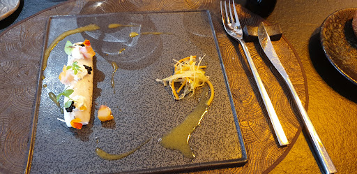 Read moreUn cadre raffiné à la décoration soignée, surtout les luminaires qui ont été sélectionnés avec goût. Un accueil et un service impeccables : compétent et efficace sans être obséquieux. Passons maintenant au coeur du sujet : la cuisine. Déjà le concept est original. Vous prenez l'apéritif et le café dans un petit salon adjacent à la salle. Certes c'est différent et cela donne une certaine dynamique au repas mais cela pousse aussi clairement à la consommation notamment au moment des mignardises où normalement on vous demande juste si vous souhaitez un café alors qu'ici on vous apporte une carte de boissons très fournie vous incitant à commander un digestif. Bref passons, la cuisine est savoureuse et bien exécutée. Les produits sont de qualité et les mariages de goût et bien réussis. Pas de surprise gustative exceptionnelle néanmoins. Deux petits bémols : les mignardises sont de moindre qualité par rapport à l'ensemble (cookie lambda, chocolat de la sucette qui s'effrite peut être à cause des nombreuses variations de température auquel il est soumis...) . Ensuite la machine à Expresso était en panne, certes cela peut arriver. Ce qui me dérange c'est qu'on me facture 2,80€ un café en capsule au même prix qu'un grand cru d'arabica. Parmi les capsules de remplacement il n'y avait aucun choix et même pas de décaféiné. Un petit bémol donc qui ternit l'ensemble ce qui est fort dommage mais facilement...