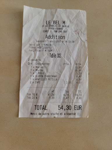 Read moreIch hatte das Vergnügen, das Restaurant Le Bel M in Fouras zu besuchen und wurde von Anfang bis Ende von der herausragenden Qualität begeistert. Dieses charmante Restaurant bietet nicht nur eine typisch französische Küche, sondern auch einen erstklassigen Service, köstliche Cocktails und einen atemberaubenden Blick auf den Strand, der den Sonnenuntergang perfekt in Szene setzt.