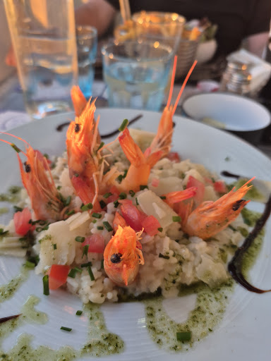 Read moreIn à stunning location right on the front with an uninterrupted view of the setting sun. The service was excellent. The food was ok. My husband had duck breast presented on a long hanging skewer. Despite asking for it to be cooked medium, it was well done. The fat on the outside was not cooked sufficiently and therefore inedible. My tartare of salmon was ok but would have benefitted from some additional seasononig. Home cooked chips and salad were...
