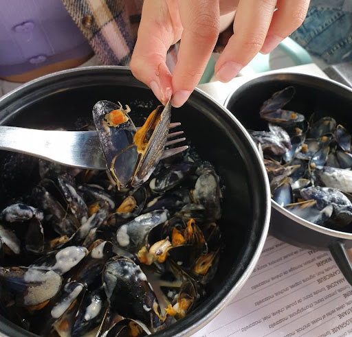 A fuir Lorsqu'on nous apporte le premier plat (un mini pavĂ© de saumon...) , la serveuse demande si le second plat c'est bien des moules, on lui rĂ©pond que non, mais ne revient pas ni avec le plat ni nous expliquer qu'il y avait eu une erreur et qu'il arriverait un peu plus tard. Longue hĂ©sitation pour dĂ©cider si je commence Ă manger pour ne pas manger froid, ou si j'attends pour que nous mangions en mĂȘme temps, je finis par commencer seule Ă manger voyant que l'autre plat n'Ă©tait pas prĂȘt d'arriver... Un long moment plus tard le patron vient nous voir en nous disant que ça arrive. On lui demande donc comment ça se fait que les deux plats ne sont pas arrivĂ©s en mĂȘme temps "les erreurs ça arrive, si vous n'ĂȘtes pas contentes vous n'avez qu'Ă vous barrer" sur un ton trĂšs dĂ©sagrĂ©able. On commence Ă se demander si c'est nous qui ne sommes pas patientes ou si c'est effectivement le patron qui ne sait pas parler aux clients, mais le couple Ă la table derriĂšre nous soutient en nous disant que nous avons raison... Couple qui finira par partir avant d'avoir Ă©tĂ© servi Ă©tant donnĂ© la trĂšs longue attente pour qu'ils puissent commander puis pour ĂȘtre servi. Le patron prend Ă partie une table qui vient d'arriver en leur disant qu'il en a marre de subir les humeurs des clients, histoire des les mettre dans sa poche, et qu'ils n'aient pas envie de partir... Le deuxiĂšme plat fini par arriver, alors que j'ai dĂ©jĂ quasiment fini mon plat... On n'aura pas vraiment profitĂ© du repas... On dĂ©cide de partir sans prendre de dessert. Pas envie d'avoir Ă parler avec le personnel vu comment ils ont Ă©tĂ© dĂ©sagrĂ©ables, mais on veut ĂȘtre honnĂȘte, on laisse sur la table en espĂšce le juste montant tout en ne partant pas trop vite pour ĂȘtre sĂ»res que les serveurs voient que nous avons bien payĂ©. Le serveur nous rappelle sur la place , nous lui rĂ©pondons que nous ne sommes pas parties sans payer mais que puisque nous avions Ă©tĂ© "gentillement" invitĂ©es Ă partir 20 minutes plus tĂŽt, nous partons aussitĂŽt notre plat fini, mais que nous ne partons pas sans payer, il veut absolument que nous allions au comptoir pour qu'il nous fasse une facture (dont on a franchement rien faire vu comment s'est passĂ© le repas), ce que nous refusons. Le patron retrouve enfin un peu la raison, il dit Ă son serveur de laisser tomber pour la facture... Une famille part en mĂȘme temps que nous, eux aussi sans avoir pris le dessert, ils ont eux aussi trouvĂ© le patron et le serveur extrĂȘmement dĂ©sagrĂ©able, et la nourriture laisse Ă©galement Ă dĂ©sirer selon ce qu'ils ont commandĂ©. On ne travaille pas dans la restauration si on ne peut pas rester poli et courtois face Ă la...