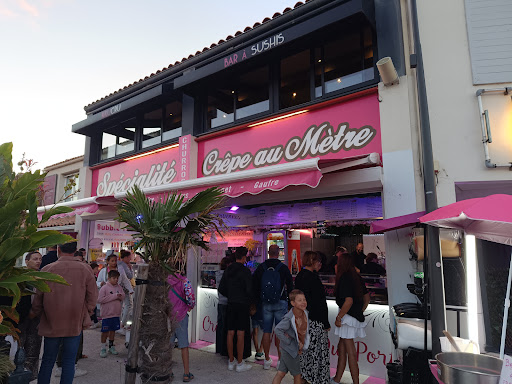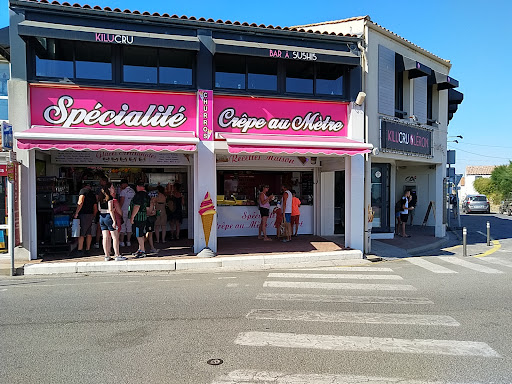 Cette crêperie est facile à trouver puisque la route passe devant. Par contre, il faut quand même faire très attention aux véhicules quand l'on veut traverser où pas pour se rendre sur le port. Elle est très bien situé dans un angle d'une rue en face du port. La devanture est facile à repérer avec sa couleur acidulée et surtout une affiche mentionnant crêpe au mètre qui est une spécialité proposée avec différents accompagnements. Également un grand cône en plastique vanille fraise attire le regard. Mais, il ne faut pas oublier, les glaces à l'italienne, churros, beignets, bonbons et d'autres préparations qui viennent se rajouter à cette spécialité. Une bonne odeur ainsi que cette multitude de couleurs donnent vraiment envie de goûter.