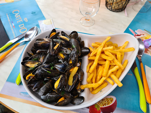 une terrasse, une veranda, une salle avec bar un repas délicieux et non excessif niveau tarif au vue de la qualité des produits une tarte au prune qui vaut vraiment le détour ! mon fils de 3ans a enfin touuut mangé dans un restaurant 😍 des sanitaires propres avec table à langer il y a pas mal de marches mais le patron m'a assuré disposer d'une rampe mobile pour l'accès aux fauteuils roulants (aide-soignante oblige j'ai demandé 😘) un personnel agréable et souriant qui a répondu a chacune de nos attentes on mange avec un peu de musique ce qui est très agréable j'ai vue 2 chiens auprès de leur maître donc je suppose que nos amis a 4 pattes sont admis pour le plus grand plaisir des enfants La mer à 2 pas pour la balade digestive !