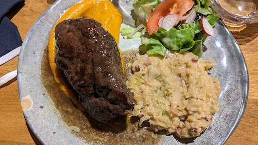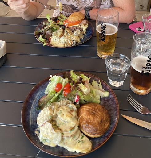 Read moreReview for the restaurant only, we weren’t staying here. We had a delicious lunch, the best we’ve had 2 weeks into our 4 week vacation in France so far, which is saying a lot! We’ve had some great meals. My husband had a special a beef stew wrapped in a pastry. The young beef (veal?) was from a woman run farm just 2 kilometers away. I had a hamburger with a sauce, a great bun, tomato and bacon. We both had the local specialty potato cheese dish and a side salad. Every bite was perfection. We each had a local beer, which was cool and crisp. The waitress/co owner was a delight, explaining in English the dishes and where locally the ingredients were from. The other staff were efficient and kind. For desert we had the melon which was grown very locally and the best cantaloupe we’ve ever had, even better than the ones our childhood families grew (sorry Grandpa). The view from the terrace is beautiful. I highly...