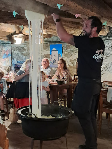Pour une surprise, ce fût une belle surprise ! Mon épouse voulait depuis longtemps manger dans un buron, alors nous consultons google qui nous en propose plusieurs. Notre choix se porte sur le Buron de la sistre. Après réservation, nous nous rendons sur place après deux petites heures de route (nous habitons non loin de Roquefort en Aveyron). Le buron est situé au milieu des champs, ce qui n’est pas sans rappeler pour quelle raison il a été construit. Accueil sympathique. J’ai été ravi de manger dans une salle qui sent bon le terroir. Pour le reste venez le découvrir : apéro maison, assiette de charcuterie locale avec son farçoum maison également , saucisse d’excellente qualité et un aligot tout simplement stratosphérique, le tout bien sur accompagné d’un vin justement choisi par la maison. Pour terminer cette valse de saveurs, une assiette de fromages locaux et enfin un dessert magique le "nuage de l’Aubrac " qui nous a envoyé au delà des étoiles. Le petit café digne de ce nom ainsi qu’un petit alcool ont clôturé la marche... SINCÈRES FÉLICITATIONS au personnel de salle ainsi que celui de la cuisine. Ces encouragements sont hautement mérités. Alors chers amis n’hésitez plus dans le choix de votre Buron et...