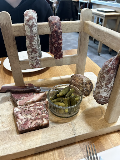 Nous avons commandé deux menus express (plat + fromage + dessert) ainsi qu’une planche de charcuterie pour une personne. Mon compagnon commence à déguster sa planche, et à peine deux minutes plus tard, une serveuse lui demande s’il a terminé pour pouvoir la retirer… Bien sûr, il lui répond que non. Quelques instants plus tard, je goûte un minuscule morceau de pâté dans l’assiette de mon compagnon. Un serveur nous interrompt immédiatement, sur un ton agressif, en m’accusant de consommer sans payer, que ce n’était "pas rentable" pour eux, et menace même de le facturer en supplément. Pour un simple petit morceau de 2 grammes, le ton était totalement disproportionné. Après un long rappel à l’ordre d’environ dix minutes, nous avons enfin pu continuer notre repas dans une ambiance pesante.
