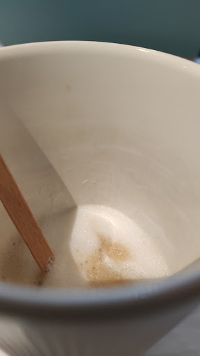 Quelle désagréable surprise, sous la mousse du cappuccino, de voir les traces de salissure des boissons précédentes ! 🤢 J'ai frotté, gratté devant le manager, c'est incrusté dans le plastique : ça ne doit pas dater d'hier... Pourtant, la nouvelle vaisselle n'a que 3 mois. Problème, donc, constaté par le manager, qui a mis le gobelet au lavage et qui l'a ressorti toujours dégueu. Aucun geste commercial ne m'a été proposé, soit dit en passant.