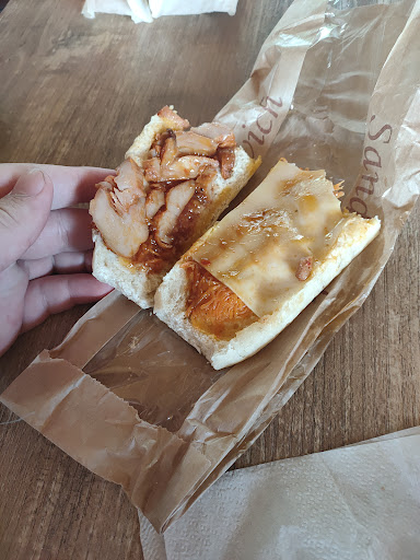 Sandwich a 5 balle pour 3 bout de poulet et des carottes rapées industriels. De plus le sandwich était petit (même pas une demi baguette), service inacceptable (serveuse pas aimable) je ne vous recommande pas, a part si vous voulez que votre TDC soit en choux fleur au vue du prix. Arrivé a 8h le matin il ne restait que 5 sandwich avec seulement 2 choix (poulet ou truite).