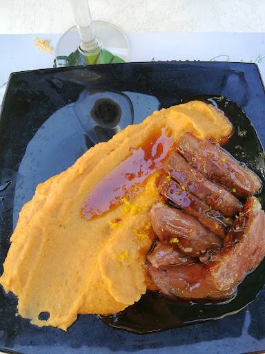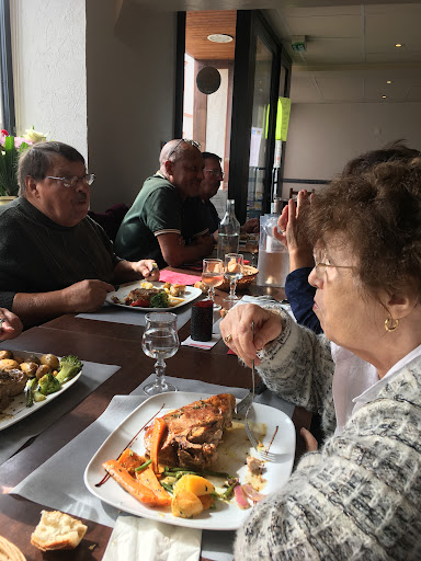 Vriendelijke ontvangst,jammer dat ik van ons vieren alleen wijn dronk en geen karaf kon bestellen ,alleen per fles of glas,2x een glas genomen,op zich geen probleem maar wel irritant dat na ons belgische gasten wel een karaf wijn konden bestellen Heerlijke voorgerechten en 2x eendenborst file en 2x entrecot,eendeborst fantstisch,de entrecots werd gevraagd hoe we die wilden,medium rear ,dus mooi rood,1 was dat ,de andere helemaal doorgebakken ,enorm groot stuk maar flinterdun,terwijl fransen naast ons een prachtige van 3 a 4 cm dik hadden ,wel kleiner maar dus beter te bakken,de ober riep de engels sprekende dame erbij,die ons vervolgens eerst nog bijna 10 minuten liet wachten om eerst nog even met uiteraard fransen gezellig te kletsen. We hadden hem tot de helft doorgesneden en de andere ook dus duidelijk te zien,wilt u dan een andere ,inmiddels was ze niet meer vriendelijk,uiteraard want mijn vrouw eet geen doorgebakken vlees als er uitdrukkelijk wat anders gevraagd was,het kwam met maar de helft van de patat van het oude bord,dus steenkoud en champignonsaus erdoor want het was van het ander bord afgeschraapt voor hooguit de helft,ze liet een foto zien dat het vlees wel rood was wat terug gegaan was,misschien zat er ergens in het midden een rood stukje,wij hadden hem op 3 plekken 4 a 5 cm ingesneden en dat haar ook laten zien.het feit dat ze met een kwade kop in discussie ging en ons voor schut wilde zetten bij de franse gasten ernaast is uiterst onbeschoft,en jammer want de rest van het eten was top. Maar de wijn en de discussie omdat ze ergens nog een rood stukje had gevonden hoort niet,wij waren niet van plan om alsnog een dessert te nemen en toen werd er nog wat onaardigs opnzijn frans gezegd,want we zagen de andere franse gasten zich omdraaien. Dit is zonde van de âŹ122.00 ,wat netjes is voor goed eten maar niet voor deze bediening,bovendien moet je maar afwachten wat drankjes en nagerechten kosten want een menukaart krijg je niet,alleen een groot bord met de voor en...