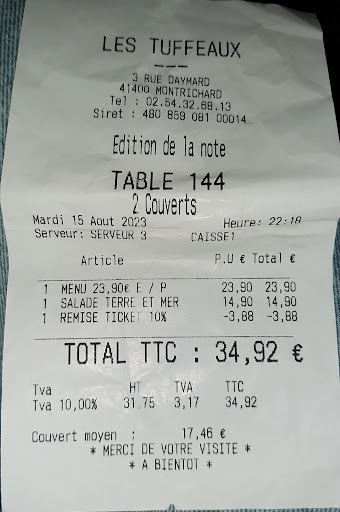 Read moreDe passage à Montrichard nous décidons de déjeuner dans ce restaurant après un tour de ville nous arrivons effectivement tôt (11h30) au restaurant. Beau soleil donc nous décidons de nous installer en terrasse se doutant bien que le service ne serait pas effectif avant midi. Un jeune homme sort et nous dit : on ne sert pas avant midi. Très bien mais nous pouvons tout de même nous assoir en attendant. Réponse de ce jeune homme un oui très froid et se permettant de lever les yeux au ciel. Nous n’en faisons rien, c’est pas grave. D’autres personnes arrivent après nous, sont installés et se voit remettre la carte, puis servit de leurs boissons alors que personne ne daigne ne serait-ce que nous donner la carte. Je fini donc par aller la chercher moi même. Après encore un bon moment d’attente, nous finissons par demander si nous pouvons enfin avoir quelqu’un pour prendre notre commande puisque toutes les personnes arrivées après nous et sont, elles prisent en charge. Réponse encore très désagréable de ce serveur : un oui j’arrive très froid sans même un regard. C’était la fois de trop. On se lève de table et lui demandons à voir le patron il nous répond avec son air condescendant (d’ailleurs je me demande si je fais bien d’écrire le mot en entier la première syllabe suffirait à déterminer ce personnage) : ah mais bien sûr. Nous n’avons finalement jamais vu le patron. Ce jeune homme qui se prend pour je ne sais qui, ferait bien de changer tout simplement de métier mais aussi de redescendre sur terre. C’est juste un jeune branleur qui se permet des choses qu’il ne devrait pas et il devrait commencer par respecter les clients Donc...