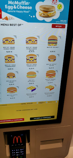 Nous avons mangé 2 fois dans ce restaurant durant notre séjour. La première fois, toutes les bornes fonctionnaient et il y avait très peu de monde. Heureusement d'ailleurs car nous n'avons pu apercevoir que 2 équipiers. Nous avons été servi sur place mais pas de vaisselle réutilisable, quel dommage dans ce sanctuaire où on ne parle que d'écologie de tri et blablabla... Mais pourquoi trier ? En ouvrant les portes de la poubelle, en fait la séparation est juste pour faire "beau", à l'intérieur 1 seul bac où tout est mélangé... Bref nous décidons de revenir le lendemain, il y avait environ 15 personnes qui attendaient pour passer commande aux bornes. Et oui sur les 6 bornes fonctionnelles la veilles, seules 3 étaient mise en route. Du coup on attend, juste pour optimiser des stats restaurant mais en fait on attend quand même monsieur le directeur, et vos stats, on s'en tape, on veut manger vite. Et si vous voulez que vos temps de service soient satisfaisants pour avoir du personnel pour commencer... Mais oubliez pas de leur expliquer qu'on ne manipule pas le poulet sans accessoire, il y avait la vaisselle réutilisable ette fois donc le lave plateau et vaisselle devait pouvoir aussi laver les accessoires, car avec les doigts c'est pas terrible, avec une doudoune en cuisine pour remuer des frites et emballer des burgers c'est pas top, et puis niveau transpiration ça devait pas être cool. Les KitKat ball et autres garnitures des glaces dans des gobelets ça fonctionne bien mais on n'a pas grand chose dans la glace, les distributeurs c'est plus juste on a une quantité satisfaisante et pas juste 4 billes ... Peut être faut il revoir votre système car les prix et le nombre d'employés devraient permettre de faire le nécessaire pour avoir du matériel en état le...