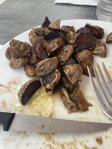 Read moreDeux étoiles … Mais 5 pour le serveur Il est seul court partout Il doit faire le service, être en cuisine à refaire des pommes de terres nettoyer les tables etc, seul. La viande rouge n’est pas terrible mais passe. Cuisson bien respectée. En revanche, on paye 30€ pour 500g de côte de bœuf mais je doute du poids réellement servi. Les pommes de terre, elles, étaient bonnes! Le poulet était très sec… dommage pour une rôtisserie Une fois le poulet cuit à la broche, il est entreposé dans un bac à réchaud qui assèche la viande, dommage… Les desserts sont fait maison c’est très appréciable. La pâte à tarte manquait un peu de cuisson. Le tiramisu n’avait pas de texture. C’est dommage, ça aurait pu être très bien...