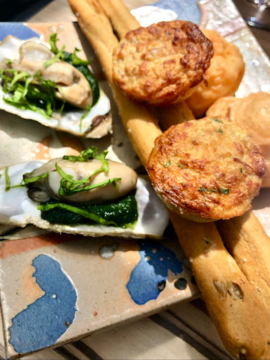 Si nous devions émettre quelques suggestions pour rendre l’expérience encore plus complète, ce serait sur la présentation au fil du repas. De l’amuse-bouche jusqu’à la mignardise servie avec le café, aucun produit ne nous a été présenté. Idem pour l’accord mets-vins : sur les quatre boissons (vins, cidre, champagne), aucune bouteille n’a été montrée ni décrite. C’est d’autant plus dommage que ce sont des acteurs locaux pour beaucoup de produits que nous aurions peut-être reconnus, et dont il aurait été intéressant de connaître au fur et à mesure au delà de la liste des producteurs à l’arrière du menu. Présenter ces choix, même brièvement, permettrait aux clients de comprendre le “pourquoi” derrière chaque plat ou accord, et de vivre pleinement la démarche du chef.