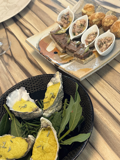Read moreDéjeuner dominical d’anniversaire réussi. Menu avec accords des vins. J’apprécie le choix d’opter pour des produits locaux de qualité. J’ai été conquis par les mises en bouche accompagnant l’apéritif. Chaque proposition a ravi les convives. Gros coup de cœur pour mon menu avec œuf bio savamment préparé pour un jaune coulant sur son lit de légumes et émulsions, bar dont la cuisson était extra avec la peau croquante, poulet fermier délicieux accompagné de légumes saisis et glacés avec des sauces et mousses végétales inventives, plateau de fromages tous made in Normandie, et un dessert à la rhubarbe à se pâmer. Tout y était gourmand et généreux comme il faut. J’ai adoré de me voir servir du cidre pour accompagner le fromage : mariage réussi. A noter un service adroit, sans chichis. Je remercie d’ailleurs notre super serveur pour sa cigarette digestive confectionnée entre deux rushes. Seul très léger hic : une grande table d’anniversaire un peu bruyante pas loin. Mais sinon c’est de la cuisine française qui valorise de nobles et simples produits, une carte de vins et spiritueux alléchante. J’aurais pu boire un Don Papa, rare sur les cartes de province. Budget très raisonnable au regard du plaisir partagé. Une table très sérieuse dans le cercle fermé de la gastronomie qui, sans viser d’étoiles, vous envoie au paradis des délices. Merci pour cet...