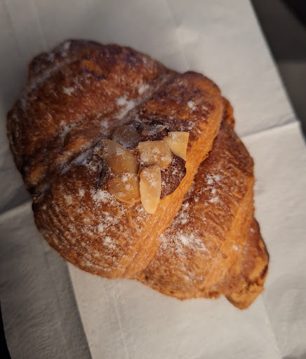 Impossible de ne pas parler des viennoiseries, qui sont fraßches, généreuses et fondantes. Le croissant est doré à souhait, bien feuilleté, pas trop gras, et le pain au chocolat contient deux belles barres fondantes. Mention spéciale pour le roulé aux raisins et le chausson aux pommes maison : un pur délice.