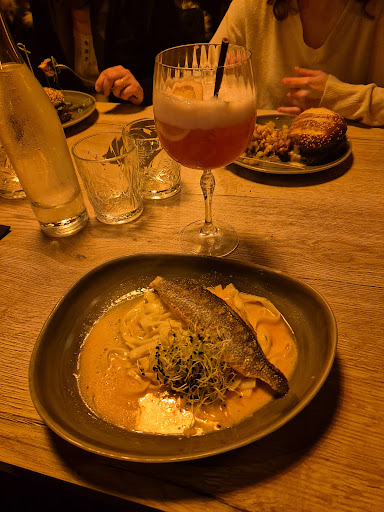 Scallops were well cooked but served in a cold plate and both the sauce and the purĂ©e were cold. No real veg at all. For âŹ30 this was disappointing. Bread was minimal but refilled on request. Why you give two people three pieces of bread is beyond me.