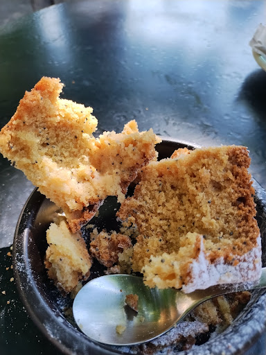 8.50euro for bitter cappuccino and a 2"x3" square of dry lemon cake from black-table Citizen Coffee. I threw the cake to the birds and the circling bees were welcome to the bitter coffee.