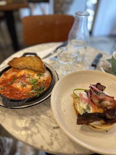Read moreLoveliest staff - everybody is smiling and greeting you, despite being very busy. Special thank you to Juliette for an impeccable service. The chef and other staff are also super kind. We visited with our dog and they brought him water and all treated nicely. We appreciated being told upfront that the wait is 45min, which we were willing to wait. The majority of cafes won’t tell you that, and you’ll be disappointed for the wait, especially on weekends - so we were definitely grateful for a heads up. Their coffees are delicious!!! I’m pretty sure it’s roasted right here too, so even if you’re not hungry, at least visit for a cup of coffee. We ordered shakshuka and salty pancakes with bacon and egg (without maple syrup since we don’t eat sugar), together with drinks it was a total of €33.50, which is very affordable for the quality and service they offer. Really great! Extra round of applause...