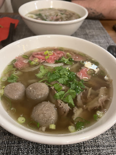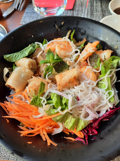 Read moreC'était bon, les raviolis grillés au poulet en entrée = top! Je n'ai pas trop aimé la sauce barbecue qui allait avec le bœuf du phó (sucrée, très forte en goût ce qui fait que le bouillon du phó a l'air un peu fade), j'ai préféré manger la viande avec un peu de sauce soja. La viande était coupée en très fines tranches. Très bonne présentation, les assiettes sont jolies. Et le personnel est très agréable. 🙂