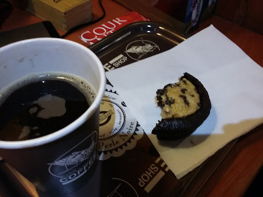 Meeting finished early. Three hours to spare. Where can I get Internet, power,coffee and maybe something to eat without feeling guilty. Wandered into the old town and found this joint just down the road from the fancy clock. Roomy, with quirky blackboards and pictures. Lots of bits and pieces from regular clients adorn the walls. Large clean and fresh toilet/ bathroom. I sat at a breakfast bar on a stool with a power outlet right there. In fact every sitting spot has a power outlet and there are power plates as well for those who have matching devices. Staff were sound, efficient and very friendly after the obligatory French gruff phase was over :-) Coffee was good, hot and tasty. I had a tasty gratin for lunch and later I lost my brookie cherry. Like all nice things it was a guilty pleasure. Anyway, great place and I got 3 bonus hours of work done with good food and...