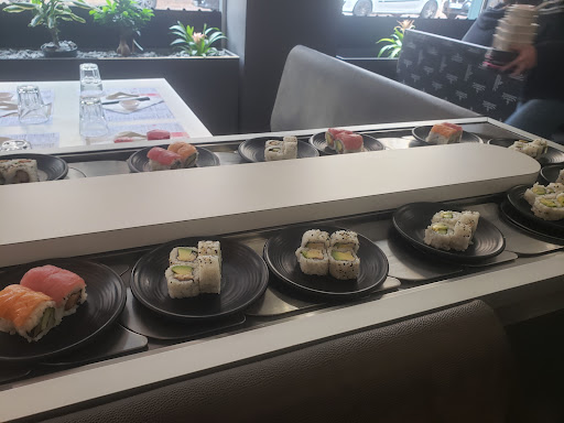 Venues le mardi 2 juillet 2019 (restaurant de la rue de la Republique à Rouen), nous sommes reparties très très très déçues. Avons pris soin de réserver avant de venir (il paraît que ça se fait comme ça pour avoir une table placée près du tapis roulant). Cela ne servait strictement à rien. En définitive, ce restaurant est très petit (en tout et pour tout, ils ont du servir 9 couverts ce jour là). Les autres tables étaient mieux placées que nous (qui avions pris soin de faire une réservation). Donc primo, les réservations ne servent à rien. Deuxio, le service est déplorable. Les deux femmes qui nous ont accueilli avait des masques fermés (même pas le sourire usuel lorsqu'on accueille des clients). Les deux serveuses parlent mal et nous reprennent lorsqu'on ne prononce pas comme il faut "Wasabi" ... il faut le faire quand même pour mettre 5 minutes à reconnaître Wasabi lorsqu'on le prononce (ce mot ne prête pas à confusion) ... et la serveuse qui nous regarde avec mépris comme si nous étions des demeurées, de nous corriger au bout de 5 minutes de calvaire, en disant : "ah Vasabi" (il faut bien prononcer le "V" surtout et pas "W") !... donc soupe à la grimace du début à la fin du service. Tertio, la nourriture qui tourne sur le tapis roulant ... pas de choix sur les petits plats proposés ... et les plats tournent à l'air non protégés (et bien entendu les aliments finissent par sécher, ce qui notamment regrettable pour les sushis). La cliente de la banquette derrière nous - qui faisait de grands gestes en parlant avec ses copines - y a même laissé traîner ses affaires à un moment donné (bonjour la fraîcheur et l'hygiène !). Les coupelles en plastique qui protègent les aliments (et qui sont présents dans certains autres restaurants que nous avons testés) ne sont pas utilisées dans cet établissement. Sur le sujet de la nourriture proposée sur le tapis roulant, en dehors d'un manque de choix évident (où est la salade d'algues osaka ?... ou sont les makis frits ?... où sont les sushis de crevettes ou d'oeufs de poisson ?... où sont les riz sautés aux fruits de mer ?... où sont les sashimis de poisson (maquereau ?... dorade ?... thon ?...), il y a un grand problème de qualité et de fraîcheur : au goût, le poisson ne m'a pas paru frais, certains morceaux étaient douteux, pour ce qui est des brochettes, les boeuf-fromage étaient assez satisfaisantes, mais les autres pas du tout ... poulet non cuit au coeur (intérieur rouge) et odeur/goût n'allaient pas ... goût de viande faisandée (j'ai franchement du recracher en raison du goût désagréable et faisandé du poulet). Les boulettes étaient insipides. Nous avons goûté un peu de tout et avons trouvé l'ensemble mauvais. La soupe servie en entrée n'avait pas de goût. La salade de chou pareil (et l'assaisonnement n'était vraiment pas top). Même le wasabi était insipide (vous pouvez en avaler une cuillère, cela ne vous fera rien). Pour ce qui est du sujet "dessert" (du moins les 6 desserts proposés avec le menu buffet à volonté de 18 euros), l'un des parfums de glace n'était pas dispo (citron) ... quant aux autres parfums, je n'ai pas pu manger cette glace (insipide, limite comme si elle avait séjourné non filmée dans un frigo, et ayant pris plein d'autres goûts horribles). Aucun contact de la part des serveuses pour nous demander si nous avions ce qu'il fallait ... sauf que l'une des serveuse toussait sans forcément mettre une main devant la bouche (bonjour le respect pour les clients !). Et à la fin, au moment de payer, la serveuse (qui ne se fend toujours pas d'un petit sourire), nous propose (sérieuse) de nous faire une carte de fidélité ... haha elle est bien bonne celle-là ... (nous avons failli éclater de rire devant son petit comptoir) ... mdr ... au moins elles ont de l'humour !... nous leur avons dit que ce n'était pas la peine pour la carte de fidélité. Est-il nécessaire de préciser que nous n'y remettrons...