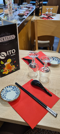 Nous passions une super soirée en famille jusqu'à ce que nous franchissions les portes de ce "self japonais" vide ... Pour résumer : Tablette de commande sale, très peu de plats hormis des desserts (qui ont triste mine) dès 19h00 sur le tapis roulant, makis secs et de triste aspect, une attente interminable pour obtenir une commande qu'on n'a d'ailleurs jamais vu au bout de 45 minutes d'attente. Bilan : A fuir si vous souhaitez manger japonais et passer une bonne soirée. Pour plus de détails : La serveuse qui nous accueille est aimable. Elle nous installe à une table en fin de tapis roulant, nous explique le système de commande via tablette. Première commande pour des boissons. L'écran de la tablette n'est pas agréable à manipuler car il est sale; nous commandons des boissons. Il nous a fallu attendre 10 minutes pour 2 coca, 1 ice tea, une limonade japonaise. OK, ça arrive même s'il n'y a que 4 tables occupée à 19h00. Nous nous intéressons au tapis roulant et là sacrée déception : il y a quelques assiettes de maki, et surtout beaucoup de dessert qui tournent :moshi et mini donuts chocolat complètement éclatés... On décide de passer commande de sushi, maki, brochette. D'autre clients s'installent entre temps. Une demi-heure plus tard les clients installés bien après nous qui commandent des mets chauds sont servis avant que nous ayons été servi. Nous avons consommé que quelques assiettes qu'on a pu prendre sur le tapis roulant mais les makis sont secs. Les sushi n'arrivent jamais jusqu'à nous... Nous passons donc encore commande via la tablette sale pour être sûr d'avoir quelques plats à manger. 30 minutes après la 1ère commande nous ne sommes toujours pas servi... C'est interminable et pénibles. Nous décidons de régler le peu consommer et de partir au bout de 45 minutes. J'explique à la serveuse que tous les clients entrés après nous ont été servis une ou plusieurs fois, même s'il restait pas mal d'assiettes pleines sur leur table. Que le tapis roulant n'est pas approvisionné et qu'il n'y a que des desserts qui tournent. Elle se dit désolée mais nous fait quand même payé plein pot... Aucun geste commercial. Je déconseille...