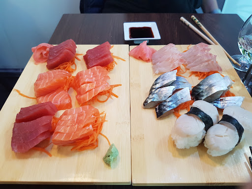Nous passions une super soirée en famille jusqu'à ce que nous franchissions les portes de ce "self japonais" vide ... Pour résumer : Tablette de commande sale, très peu de plats hormis des desserts (qui ont triste mine) dès 19h00 sur le tapis roulant, makis secs et de triste aspect, une attente interminable pour obtenir une commande qu'on n'a d'ailleurs jamais vu au bout de 45 minutes d'attente. Bilan : A fuir si vous souhaitez manger japonais et passer une bonne soirée. Pour plus de détails : La serveuse qui nous accueille est aimable. Elle nous installe à une table en fin de tapis roulant, nous explique le système de commande via tablette. Première commande pour des boissons. L'écran de la tablette n'est pas agréable à manipuler car il est sale; nous commandons des boissons. Il nous a fallu attendre 10 minutes pour 2 coca, 1 ice tea, une limonade japonaise. OK, ça arrive même s'il n'y a que 4 tables occupée à 19h00. Nous nous intéressons au tapis roulant et là sacrée déception : il y a quelques assiettes de maki, et surtout beaucoup de dessert qui tournent :moshi et mini donuts chocolat complètement éclatés... On décide de passer commande de sushi, maki, brochette. D'autre clients s'installent entre temps. Une demi-heure plus tard les clients installés bien après nous qui commandent des mets chauds sont servis avant que nous ayons été servi. Nous avons consommé que quelques assiettes qu'on a pu prendre sur le tapis roulant mais les makis sont secs. Les sushi n'arrivent jamais jusqu'à nous... Nous passons donc encore commande via la tablette sale pour être sûr d'avoir quelques plats à manger. 30 minutes après la 1ère commande nous ne sommes toujours pas servi... C'est interminable et pénibles. Nous décidons de régler le peu consommer et de partir au bout de 45 minutes. J'explique à la serveuse que tous les clients entrés après nous ont été servis une ou plusieurs fois, même s'il restait pas mal d'assiettes pleines sur leur table. Que le tapis roulant n'est pas approvisionné et qu'il n'y a que des desserts qui tournent. Elle se dit désolée mais nous fait quand même payé plein pot... Aucun geste commercial. Je déconseille...