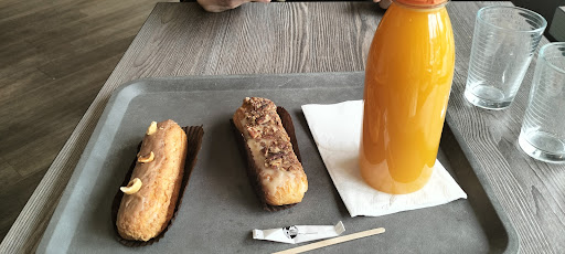 Read morePer noi italiani qui in Francia tutto è costoso ma siamo stati soddisfatti della colazione fatta in questa panetteria e pasticceria. Aveva una bella zona per mangiare sul posto, abbiamo preso 2 éclair ed erano buoni anche se un po' molli e uno doveva essere alla Nutella invece io penso che ci abbia dato quello noisette. Buona la spremuta fatta sul momento anche se noi siamo abituati alle arance tenute in frigo per berla fredda e lo zucchero dovrebbe essere a disposizione perché ne abbiamo chiesto e ci ha dato una bustina...