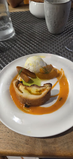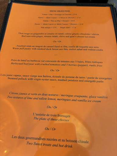 Read moreBrilliant spot for lunch in a tourist heavy area but not a tourist restaurant. We had the entree, plat,dessert menu. There were two items to choose from in each category so we had one of each. Each one was more delicious than the next. We started with the red tuna with goat cheese ice cream. Amazing. I never would have thought of that (why I am not a spectacular French chef!) and the sprig of dill on the top was perfect. The duck in puff pastry was also delicious but I give the tuna the prize for entree. The plats were a delicious steak with amazing fries and a nicely done fish. Both wonderful but in this case I give the win to the steak. Both desserts were also delicious, the lime dessert was my favorite but my spouse loved the cafe gourmand. Altogether with a glass of wine each and two coffee the bill was 77€. Worth every penny. Thank you so much to the lovely staff for being so helpful and the chef...
