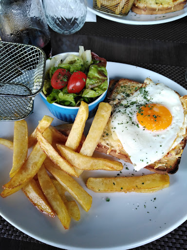 2 couverts : 1 steak haché frites et 1 hamburger frites. Au bout de 30 min, nous ne sommes toujours pas servies. La serveuse nous dit qu'elle doit encore envoyer 2 tables de 3 personnes avant la notre. On demande si dans 15 min, on pourra être servie (reprise du taf), elle va en cuisine et revient nous dire : ça peut être possible pour 13h30 - soit dans 15 min - mais uniquement si vous prenez un croque monsieur à la place..... Du coup, on...