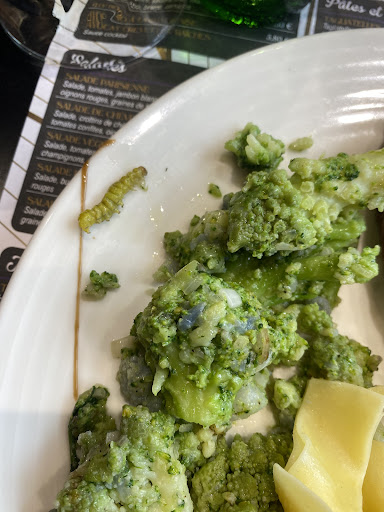 Read moreLA CHENILLE S’INVITE À VOTRE TABLE ! Notre repas 🍽️ de fin d’année ! 11 convives, accueil chaleureux et cadre agréable, prise de commande scolaire et glaciale 🥶 Amener des plats presque synchro … jusque là banal ! Oh ! une surprise avec les brocolis ! Une chenille, un ver, une branche de brocolis ? Je vous laisse analyser la photo (je ne suis pas expert) On me reprend l’assiette sans un mot ! … ou tout juste « je vois en cuisine… » On revient avec un air très hautain « je ne remets pas votre parole en doute mais c’était une branche de brocolis MONSIEUR ! » On revient avec un truc vert écrasé pour me confirmer que c’est bien une branche de brocolis ?!? Une chance que j’ai eu le réflex d’avoir pris la branche en photo On a VRAIMENT voulu me prendre pour un MENTEUR quelle mauvaise foie 😡 Une mauvaise expérience à table, ça arrive ! Personne n’est parfait ! Dans cette situation on fait son mea-culpa, on reste PRO et au combien commerçant ! et surtout pas prendre le client de HAUT, pour un MENTEUR et après nous donner un cours entre les ver 🪱 et les chenilles 🐛 dans son assiette 🤢 Et ça venant de la bouche du dirigeant… à qui le geste commercial de 20% et le remplacement des assiettes de brocolis était largement suffisant pour ne pas faire par de notre avis négatif ? FINI, on reviendra plus jamais 👎 La prochaine fois, on...