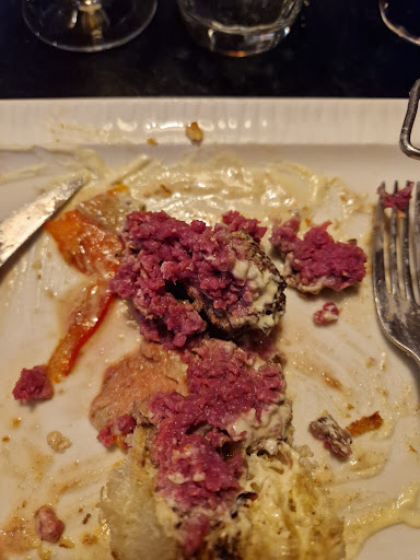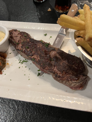 Read moreBeaucoup d'attente pour venir nous accueillir (alors que nous étions seuls) les autres convives étaient déjà attablé en train de manger. Le 23 décembre : pas de foie gras ! A quelle date faut-il venir pour en avoir ? La salade bergère avec tranches de lard et chèvre chaux sur toast servi froid et les tranches de lard trop cuites (de la semelle en bouche) une tonne de chips mélangés à la salade en sachet fade mal assaisonnée et trop huilée. Et 2 ridicules morceaux de tomates plus courts qu'une demi falange. Très décevant ! La béarnaise servi dans un petit pot à mon fils était excellente ainsi que son steak. (Même si la cuisson n'était pas respectée. Il avait demandé saignant, ça lui a été servi à point) le serveur nous a proposé 2 plats du jour (sans foie gras.... c est logique en cette période de l'année....) : turbot et poêlée de champignons pour 40 € et une viande rouge avec.... (on n à pas compris l'accompagnement....ni le nom de la viande rouge, tellement il parlait vite !) Pour 30 €. Sans entrées, ni dessert, ni alcool bien sûr : déjà 70 €. Cette salade et ce steak avec une eau plate nous a coûté 41€. Et là encore, pour payer, il a fallu...
