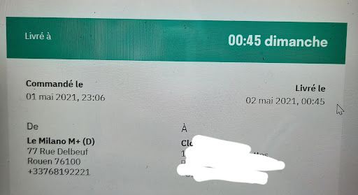 Et comme vous essayez de me faire passer pour une menteuse je joins la photo comme quoi vous déclarez m'avoir livré à 00h45 alors que vous êtes sois disant "fermé" (on notera l'incohérence des propos n'est-ce pas) sauf que je n'ai jamais été livrée. Le minimum est de rembourser le client quand on est en tord et qu'il n'est pas livré...