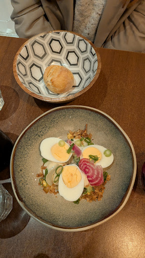 Read moreFound this by chance but couldn't happen in a better place! The food was great, the menu small and dynamic changing frequently depending on seasonality and availability of ingredients. The most surprising dish was the veal, and the dessert (with plum jam) both delicious and interesting at the same time. Great service, the waiter was kind, fun and helpful and let us in despite the hour being 10 min before end of service. Would definitely...
