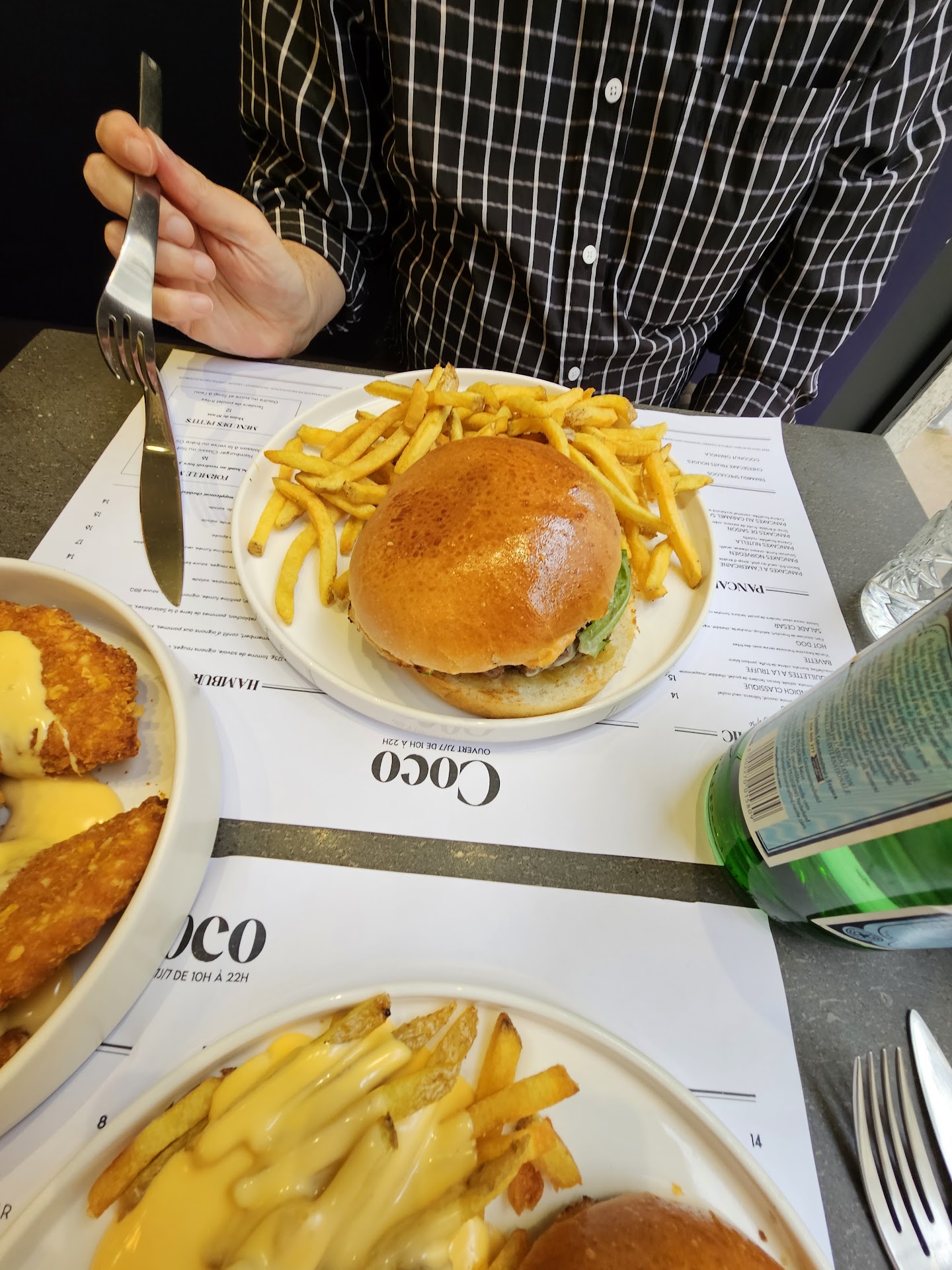 Read morePetit jump Ă Rouen pour les 20 ans de mon fils... Nous sommes allĂ©s dĂ©jeuner un peu par hasard ce midi chez Mon Amour, et quelle jolie surprise !!! Ă deux pas de son appart d'Ă©tudiant, place des Carmes, une petite adresse Ă dĂ©couvrir absolument. PremiĂšre impression hyper positive : les deux serveuses sont tout sourire, super gentilles et attentives Ă leurs tables. CĂŽtĂ© cuisine, elle est ouverte sur la salle, certains n'aiment pas ça, moi, j'adore ! Quand une cuisine est ouverte, elle ne triche pas. Et celle-ci ne fait pas exception : tout est fait maison et ça se sent ! La carte est petite, gage de fraĂźcheur des produits, mais les propositions sont variĂ©es. Les vĂ©gĂ©tariens et les amateurs de viande y trouvent des burgers originaux sans ĂȘtre extravagants ou incohĂ©rents, des tartines, des planches, des tenders,... tout est dĂ©licieux (le burger New-York est une tuerie â€ïž). Et les desserts, tous faits maison, eux aussi, sont Ă la hauteur des plats : la brioche perdue et la mousse au chocolat... Waooow !