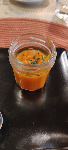 The dining room, though small, felt cosy and inviting, creating an intimate atmosphere. We chose the 3-course lunch menu, priced very reasonably at just €26 per person, which was exceptional value considering the quality and originality of the dishes.