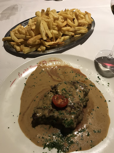 Read moreBon par où commencer Restaurant tout neuf mais la déco est pas super rien de vraiment au goût du jour Un peu la même chose pour le service qui ce fait avec des serveuses qui traversent la salle de long en large avec un grand plateau Pour la cuisine viande rouge et abats Bon par de viande rouge pour nous car nous voulons testé la vraie spécialité Entrée tête de veau bon présentation dans un bol un bon Moi hareng pommes de terre le plat de mon enfance alors harengs très bon mais 3 rondelles de pommes de terre Aucun goût car de l'huile comme assaisonnement insipide Le plat tripes à la mode de Caen Nous avons eu des triples dans un bol avec un bouillon plutôt toujours sans assaisonnement Moi j'ai pris du foie de veau cuit au beurre bon pas vraiment de travail autour comme à la maison mais bon avec un gratin dauphinois sec pas terrible Pour les desserts que je n'ai pas pris là on se croit vraiment dans une autre époque la serveuse vous amène un plateau avec 6 ramequins dessus ou petit pot en verre et vous annonce les desserts fromage blanc crème aux œufs mousse au chocolat île flottante alors là je reste un peu dépité de cette présentation ça ne donne pas envie et la présentation se fait ainsi à toutes les tables avec les petits pots servis sur un plateau bon pour les gourmands passer le dessert...