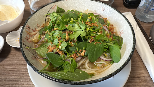 I reserved a spot via Google and was not sure we secured a spot but went anyway. Luckily the restaurant received it and had a table of 2. It would have been nicer to receive confirmation of the reservation as we saw that this restaurant was popular. As an Asian restaurant I would say it could be one of the few good ones in that area but in a bigger context of other Asian restaurants I tried in Europe, it was ok. The beef slices for the pho was rather little for the price and not as tender as expected. I would have expected beef balls to be included but you had to pay an addition for it. I had a Vietnamese fare in Strasbourg and it was the same price with meat balls. Fresh mint tea was good but it was not totally mint tea because there was also jasmine added. Was not a problem for me but for anyone expecting just mint, the person would...