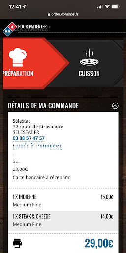 Après 3 déception sur 3 commandes cela faisais plus d un an que j avais décidé de ne plus passer commande. Aujourd hui, me disant que je peu essayer à nouveau, les problèmes du début pouvant être passé.... Je suis déjà surpris de devoir payer un supplément de 30 centime par sauce sachant que je commande 2 entrée, je commande quand même mes 2 sauces, une curry et une spicie, a la livraison je me rend compte qu il n y a qu une seule sauce et qu en plus de ça c est une barbecue, donc aucune des 2 que j ai commandé et payé ( vu que j ai payé en ligne....). Je le fais remarquer au livreur, bien sûr lui n y peu rien ce n est pas lui qui a préparer la commande il ne fais que livré ce qui a été préparé par une autre personne, il a même essayé d arranger les choses en proposant de revenir me ramener les sauces ou essayer de me les rembourser, me les ramener voulais dire manger froid et rembourser je ne suis pas a 60 centimes prêt... Je voulais juste pouvoir manger avec les sauces que j avais commandé. On va me dire ce n est que 60 centimes bien sûr. Mais moi je retiens surtout que sur 4 commandes passé chez Dominos pizza Sélestat ça fais un totale de 4 déceptions. Une chose est sûre il n y en aura pas...