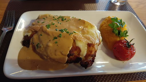 Read moreAuf unserer Tour durch das Elsass hatten wir einen Zwischenstopp in Barr eingeplant und uns (aufgrund der Bewertungen) für das "Le Brochet" entschieden.||Bei unserer Ankunft gegen 18h schien uns das Restaurant im Vordergrund zu stehen, obwohl kaum Gäste da waren. Die einzig anwesende Kraft nahm Sicht alle Zeit Eingaben in das Kassensystem zu tätigen, bevor wir begrüßt wurden. Dann wurde unsere Reservierung gesucht und prompt gefunden, statt uns nun zunächst "ankommen" und in die Zimmer zu lassen, wurden erst einmal die aus Sicht des Hauses wichtigeren Dinge geklärt:||Die gebuchten Zimmer waren - trotz anders lautender Information bei der Buchung (Kreditkarte nur als Sicherheit, Zahlung vor Ort) - bereits der Kreditkarte belastet worden und ich sollte dies zunächst bestätigen. Dann würden wir zur umgehenden Entscheidung gedrängt, ob wir denn am nächsten Morgen frühstücken wollen, nachdem wir uns dafür entschieden sollte auch das Frühstück sofort bezahlt werden. Es gab bis hierher zwar schon mehrere Signale, dass wir gerne erst einmal auf die Zimmer gehen würden, um uns frisch zu machen (an diesem Tag war es sonnig mit 30 Grad im Schatten), das hinderte den Mitarbeiter jedoch nicht daran, zunächst noch zu versuchen eine Tischreservierung für das Abendessen "klarzumachen". Erst als ich etwas energischer sagte, dass wir nun doch gerne auf die Zimmer wollen und das dann später entscheiden werden, bekamen wir endlich die Zimmerschlüssel.||Die Zimmer selbst (1.OG) muten wie aus den späten 70ern oder frühen 80ern an, einzig der kleine Flachbildschirm durchbrach diese Anmutung. Penibel sauber war es im Bad nicht und die Zimmer gehen entweder zur Straße (laut) oder zu Hof, dann aber über der Küche, was mit den entsprechenden Gerüchen verbunden ist.||Die Betten hatten allerdings gute Matratzen, die Fenster lassen sich aber nicht kippen, nur ganz öffnen oder schließen. Dadurch war der Schlaf nicht gerade erholsam.||Das Frühstücksbüffet war überschaubar und hatte keine Highlights.||Fazit: für eine Nacht auf der Durchreise (mit Abstrichen) okay, aber mehr...