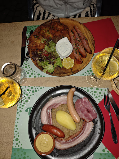 Read moreLa cuisine était bonne mais ce n'est pas l'objet de ce commentaire. Voici encore un restaurant qui donne la désagréable sensation de se faire avoir... Appâtés par une formule entrée+plat ou plat+dessert à 11€50 (très raisonnable pour un midi) sur une ardoise à l'entrée, nous demandons si nous pouvons déjeuner vers 12h45. Pas de problème! Ce n'est qu'une fois attablés et au moment de la prise de commande qu'on nous explique qu'il n'y a plus de choucroute alsacienne dans le cadre de la formule, mais seulement de la choucroute de poisson. Autrement dit si nous ne voulons pas ce plat un peu spécial adieu la formule bon marché ! Par contre nous pouvons commander la fameuse choucroute alsacienne à la carte au prix de 18€... Allez comprendre !!! Évidemment le reste de la carte est beaucoup plus onéreux et en complet décalage avec le budget que nous nous attendions à mettre en rentrant dans le restaurant ! D'où cette désagréable impression d'être les pigeons ! Si la formule n'était plus disponible l'ardoise aurait dû être retiré ou le plat barré ! Nous n'avons du coup évidemment pas pris de desserts, mais 40 euros pour 2 plats et 2 boissons nous semblaient un budget suffisant...