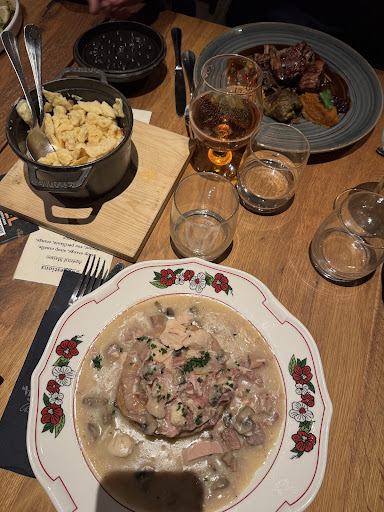 service "minimum!" en dessous de tout! serveuses antipathiques..Nous avions réservé par internet pour fêter l'anniversaire de notre fils & avons demandé (mon épouse & moi étant octogénaires) si possible un endroit calme pas trop exposé aux courants d'air. à n/ grand désespoir nous avons été placés dans un genre de niche pseudo rustico -alsacienne dans la "Schlettsdaterstub" un endroit des plus exigu, bref un "cagibi" table & bancs fixes pratiquement sans espace! pour s'asseoir il fallait s'asseoir au début du banc & "ramper jusqu'à sa place!...bref totu ce qu'il faut pour des gens âgés! Nous avons demandé à la serveuse s'i nous pouvions avoir un autre endroit : NON! tout est occupé! pourtant nous sommes venus à 12 H alors que nous avions réservé pour 12h15.... enfin, nous étions engoncés à une table sans sets, carte ou autre bref une table de cantine! Nous avons bien dû attendre longuement pour commander notre apéritif et encore pour avoir la carte des menus (finalement un tableau écrit à la craie) que la serveuse s'est contentée de poser par terre.....notre fils a dû le tenir à hauteur de table afin que les 3 personnes du fond puissent en prendre connaissance. de même il a dû chercher une carte pour les vins...après encore un longue attente (où j'ai même failli tomber en syncope) nous avons renoncé aux entrées & commandé le plat principal......une serveuse nous a flanqué la bouteille de vin sur la table (heureusement débouchée) sans la présenter à gouter, ni rafraichissoir! & est repartie....... après encore une bonne attente le repas est venu. mon épouse s'est permise de faire remarquer que c'était très long ; réponse impertinente "il faut qd même que ça cuise"...!! heureusement qu'une serveuse un plus mûre & gentille a desservi & noté la commande des desserts, car nous étions prêts à y renoncer. finalement nous somme sortis à 15h15....une vraie "épreuve" pour des personnes âgées! Malheureusement, nous ne pourrons recommander votre restaurant & avec tous nos regrets pour cette journée que nous ne marquerons pas d'un...